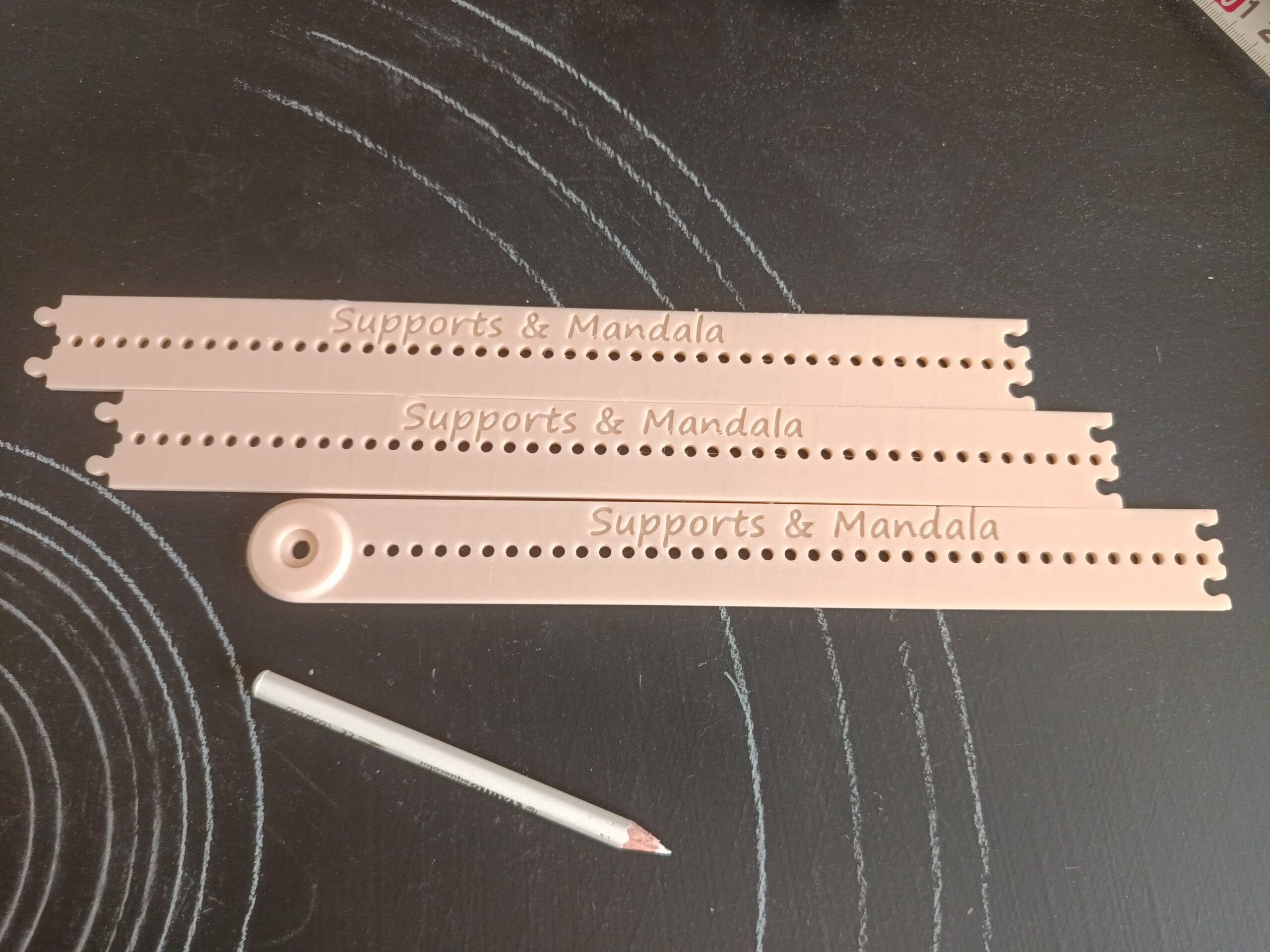 Règle Mandala raccordable à l’infini, votre règle est composée de 3 segments de départ, chaque segment mesure 27.5 cm.